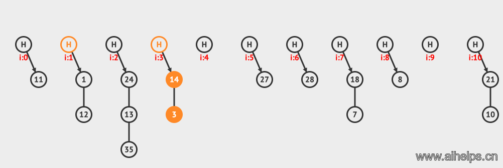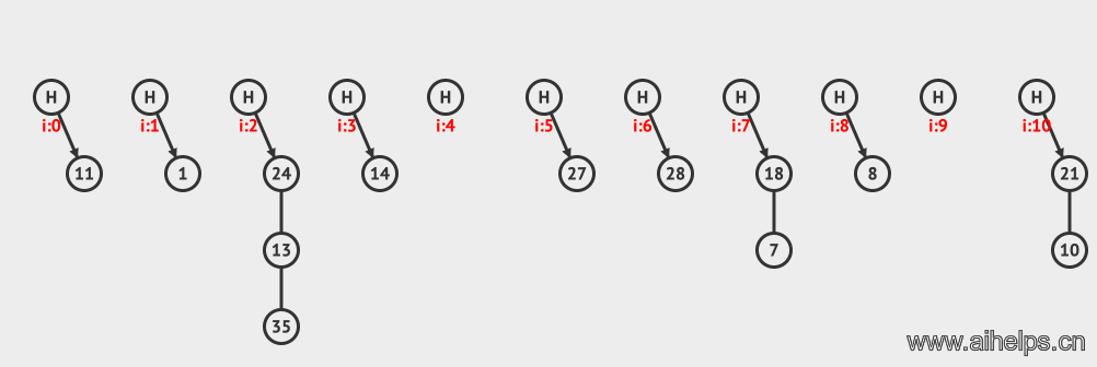 上面是分离链接插入的例子,向现有的hashMap中插入12和3这两个元素。