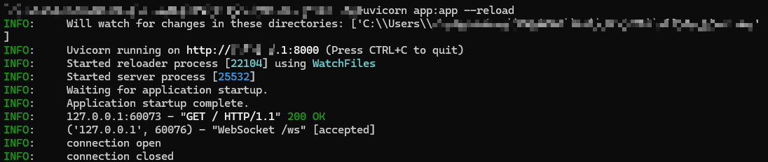 • await websocket.accept():首先,函数接受来自客户端的 WebSocket 连接请求,建立与客户端的通信通道。