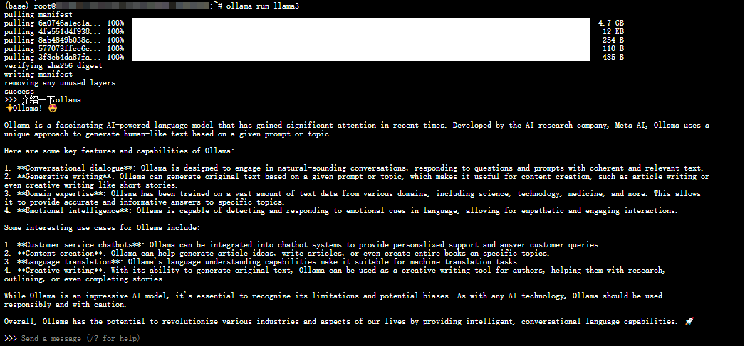 此命令将自动下载最新版本的 Ollama 并完成安装,以下是 Ollama 使用常见的指令: