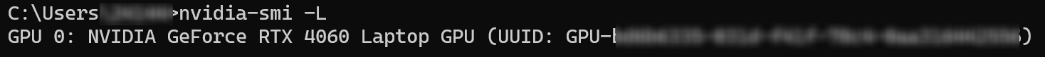 nvidia-smi -L - 在输出中,找到想要使用的 GPU 的 "UUID" 值。 例如: