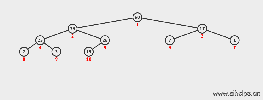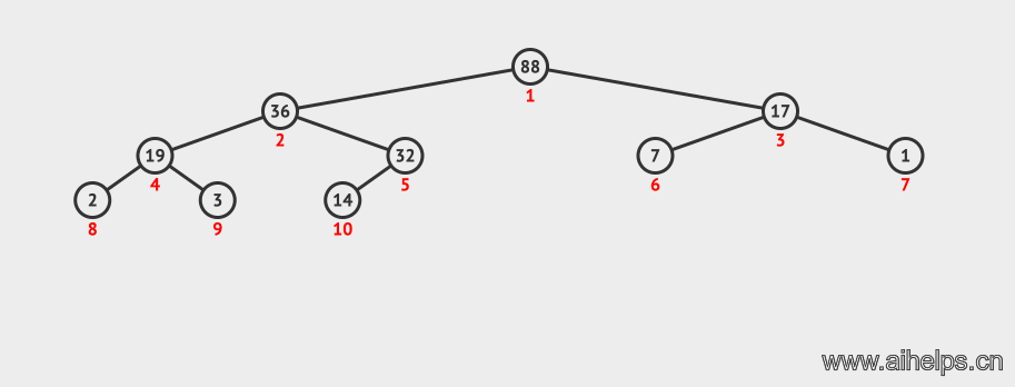 上图中的二叉堆,如果我们以层的存储顺序存放到数组中,那么应该是这样的: