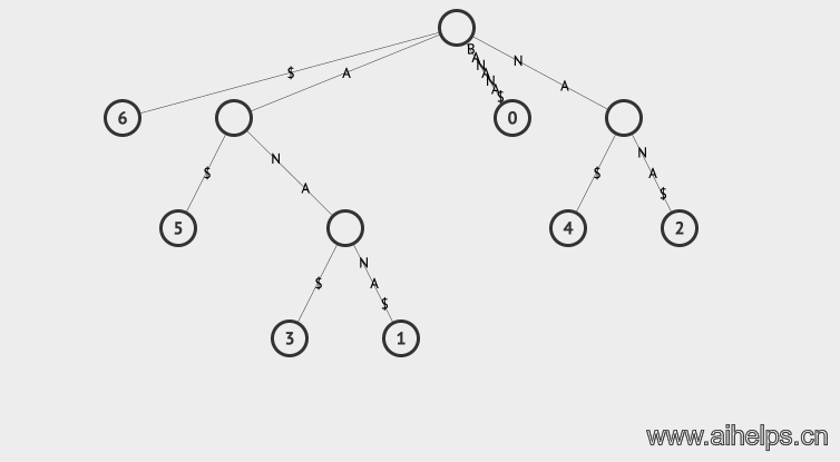举个例子,如果我们要存储一个单词叫做BANANA,我们以标志$作为单词的结尾,那么BANANA有多少后缀呢?